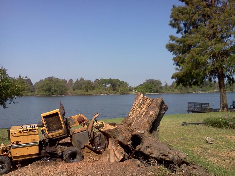 "I live on Bayou St. John in New Orleans. Hank was the only contractor I could find to remove this giant old pecan stump from the back yard of my waterfront property. My wife and I were sad to see this tree destroyed by Hurricane Issac. Hank reduced this monstor of a stump into something my lansdcaper could manage and haul away. Hank did well; my landscaper was able to level the area, fill it, and then lay sod over it. It now looks like there was never a tree there! Now we no longer have to look at that reminder of the tree that Issac took from us. Hank is the best!"